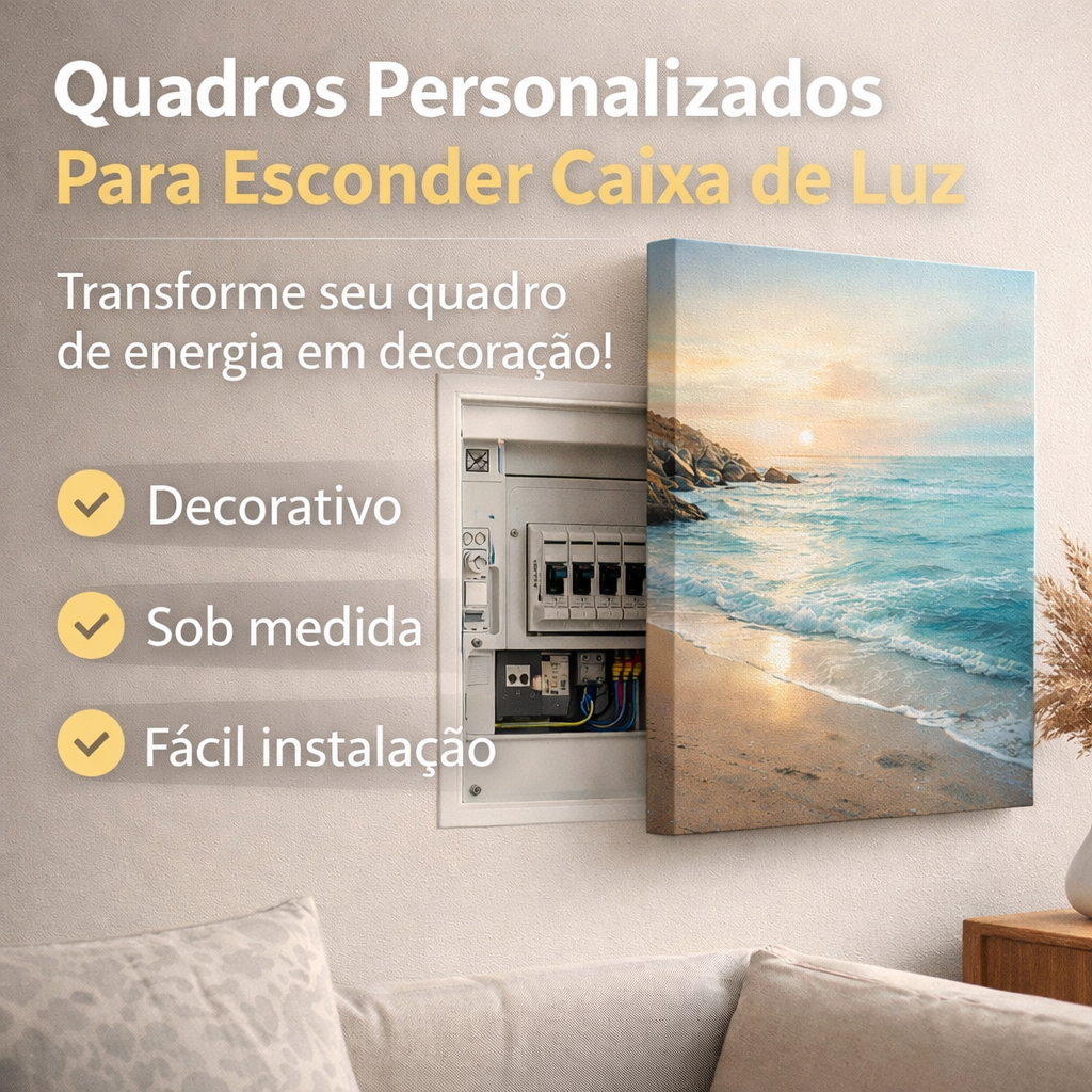 O quadro personalizado para esconder caixa de luz é a solução ideal para transformar o quadro de energia em parte da decoração. Produzido em tela canvas de alta qualidade, ele cobre o disjuntor com elegância sem comprometer o acesso. Perfeito para s